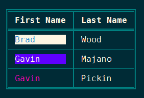 value- The actual string value to printoptions- A string of print helper options- typically a color or background color
