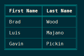 The print helper contains a feature that will generate ASCII tables to print tabular data from the CLI. The easiest way to see what this looks like is to run the outdated command in the root of a project: